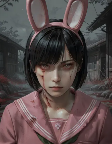 已训练过粉色兔女郎装束配绿色领结——可能需要通过提示词指定颜色,