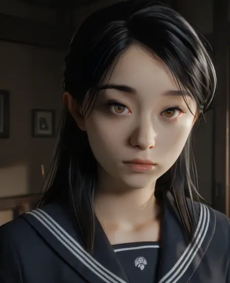nishidaxl、黒髪、茶色の目、ロングヘア