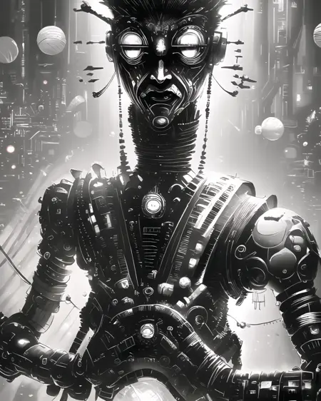 Adorned with intricate, sinister embellishments of metallic allure, the TechnoballX embodies both fascination and apprehension in a society ruled by technological supremacy and imminent collapse.