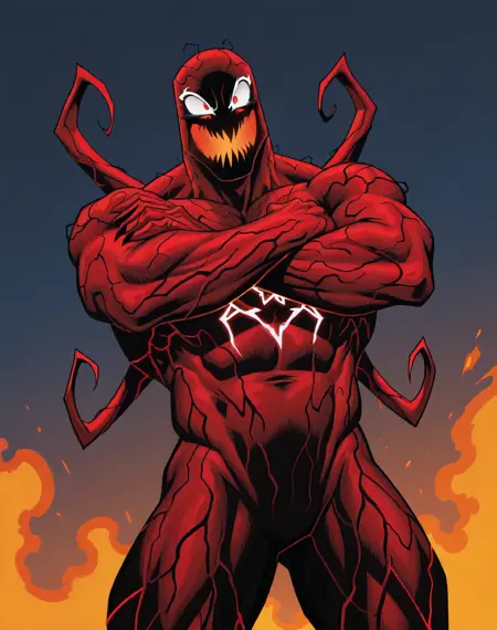 This is an Illustrious style lora for the character Carnage from Marvel Comics. This version is the style of Carnage is during his codex phase wherein he went around the Venomverse to try and tind a full collection of symbiote codexes to become powerful enough to conquer Knull and become a god. During his efforts he simultaneously was destroying the Venomverse as well.