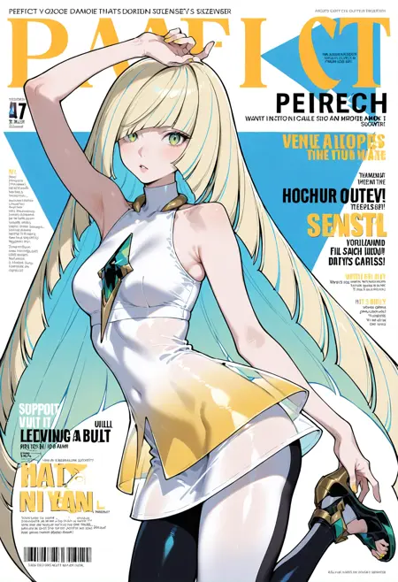 외모: 1명의 소녀, 긴 머리, 금발, 녹색 눈, 매우 긴 머리, 둔한 앞머리, 스트라이프 머리, 다색 머리, 앞머리, 한쪽 눈 위의 머리카락