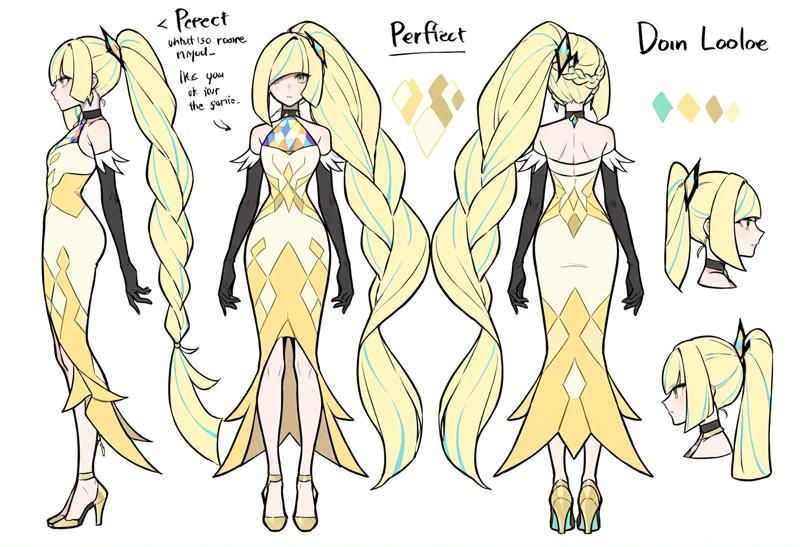 대체 복장: 드레스, 장갑, 공식 대체 복장, 팔꿈치 장갑, 노란 드레스, 검은 장갑, 노란 신발, 다이아몬드(모양), 하이힐, 머리 장식, 소매 없는 드레스, 어깨 노출, 속눈썹, 소매 없음, 대체 색상, 신발, 팔뚝 단발, 대체 헤어스타일, 땋은 머리