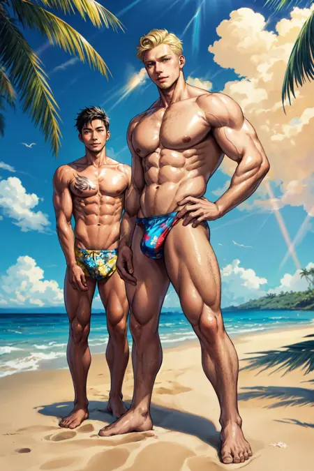BoyFusion is a versatile male-focused model with high contrast and slightly exaggerated bodies. This model was initially trained on bara and western gay art on top of a tweaked NAI build, and will lean to more muscular and defined bodies.
