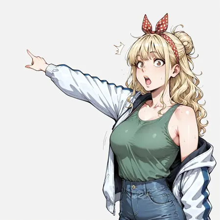 1girl, solo, 금발, 긴 머리, 파마머리, 머리묶음, 단일 머리묶음, 갈색 눈, 입술, 자물쇠뼈, 가슴선, 중간 크기의 가슴, 배꼽, 복부, 성기