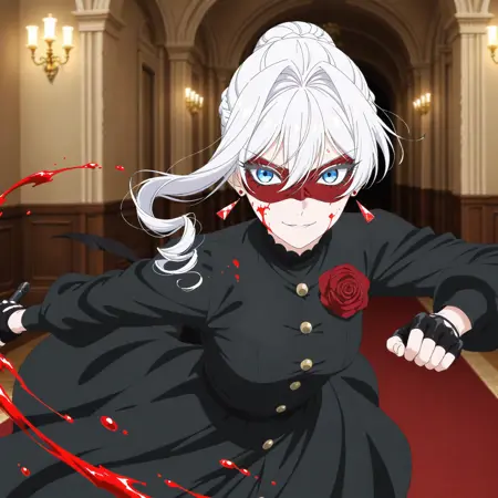 This LoRA features an elegant silver-haired girl in classic Victorian-style outfits.