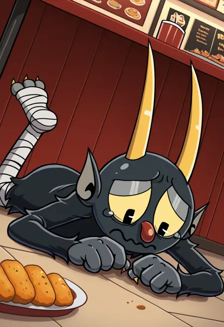 《Cuphead》游戏及动画中的恶魔。此LoRA版本专注于《Cuphead》动画中更具卡通风格的恶魔形象。