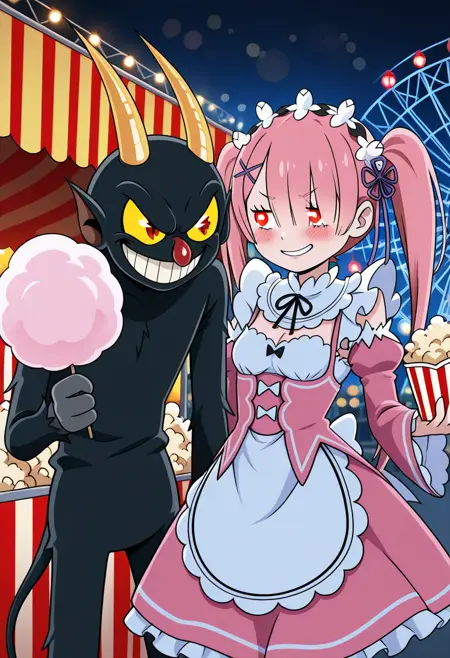 此LoRA实属“被诅咒”之作。我重做了四次,因为恶魔与其他角色一起出现时无法正确显示——LoRA甚至会画出两个恶魔,而非其他角色。