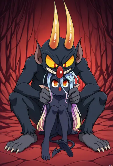 《Cuphead》游戏及动画中的恶魔。此LoRA版本专注于《Cuphead》动画中更具卡通风格的恶魔形象。