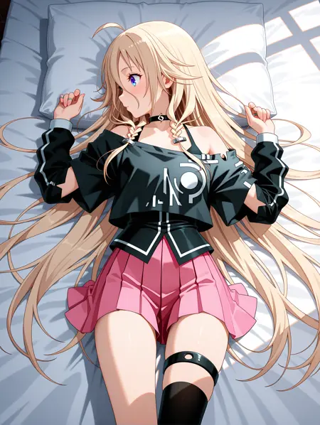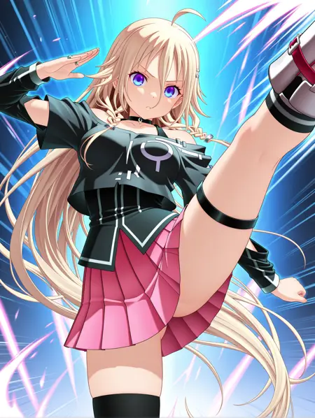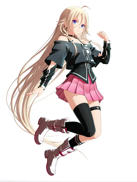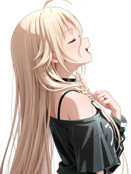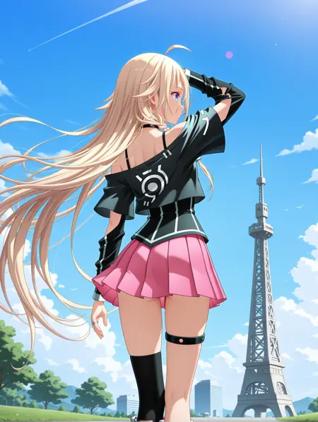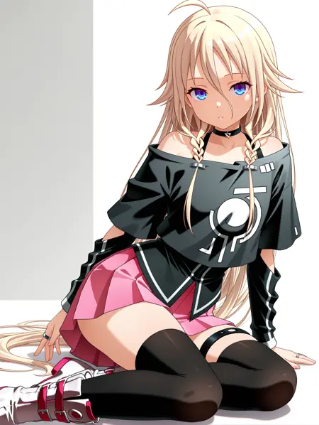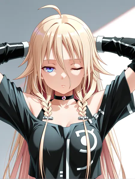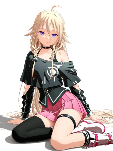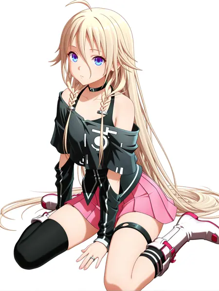 트리거 단어: ia_xs, ahoge, 금발, 매우 긴 머리, 눈 사이의 머리카락, 더블 브레이드, 파란 눈,