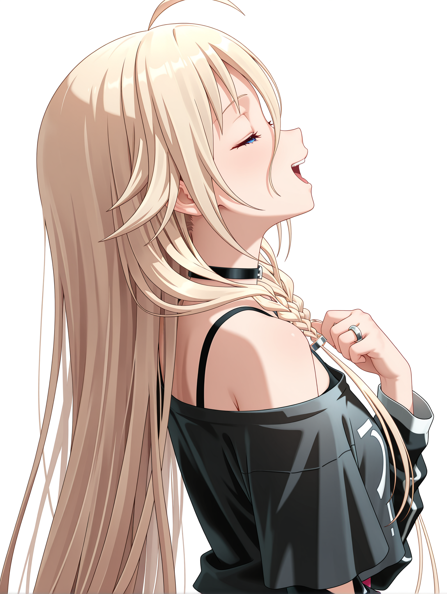 トリガーワード・ia_xs,ahoge,blonde hair,very long hair,hair between eyes,twin braids,blue eyes,