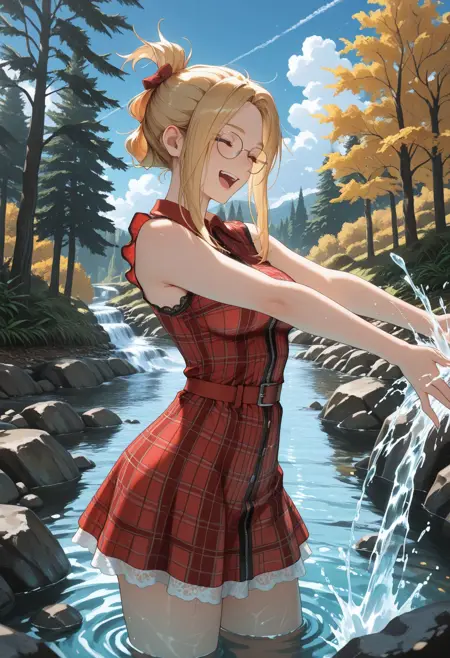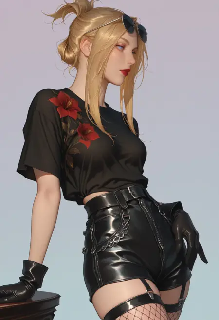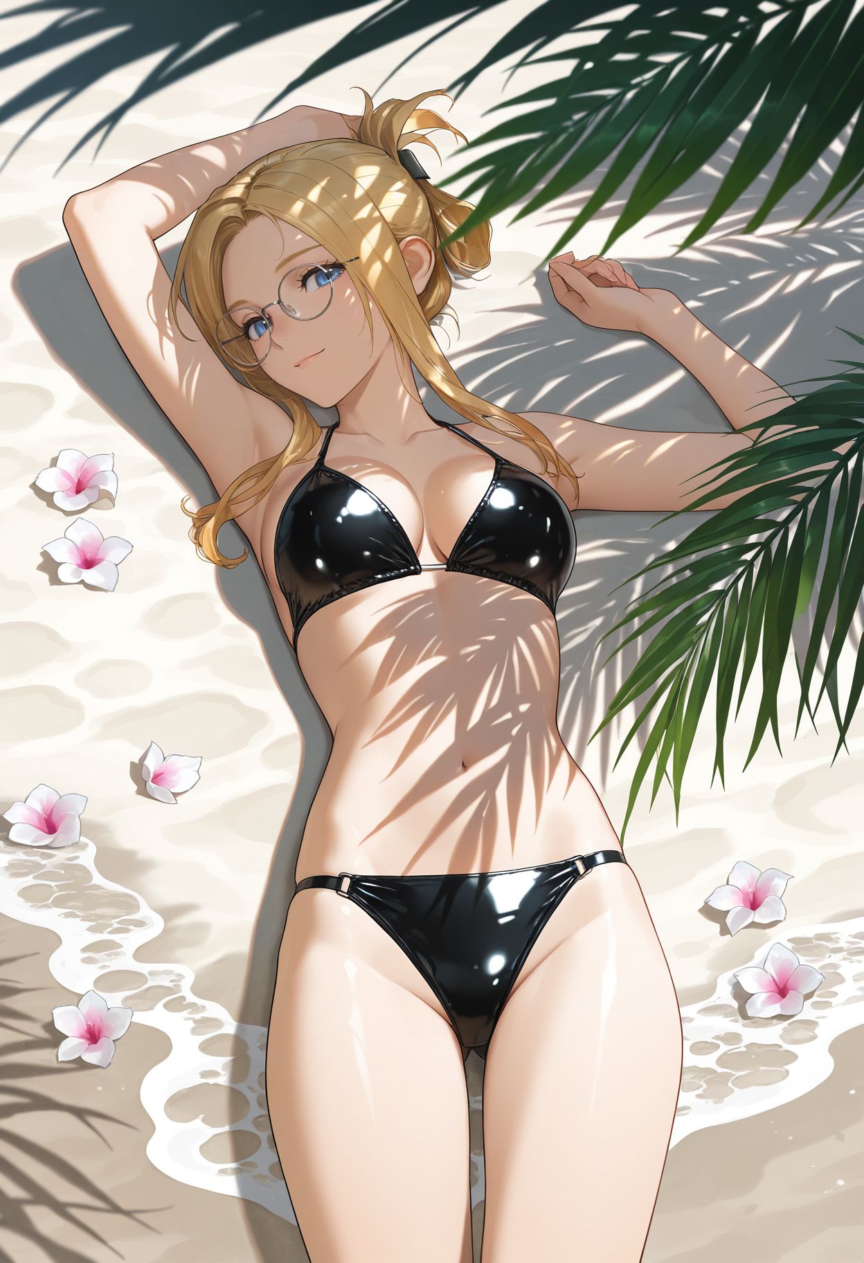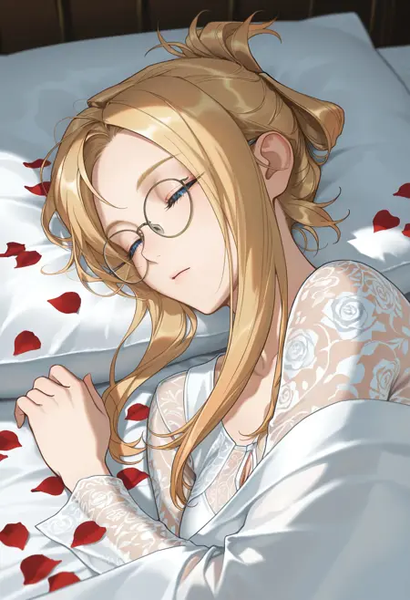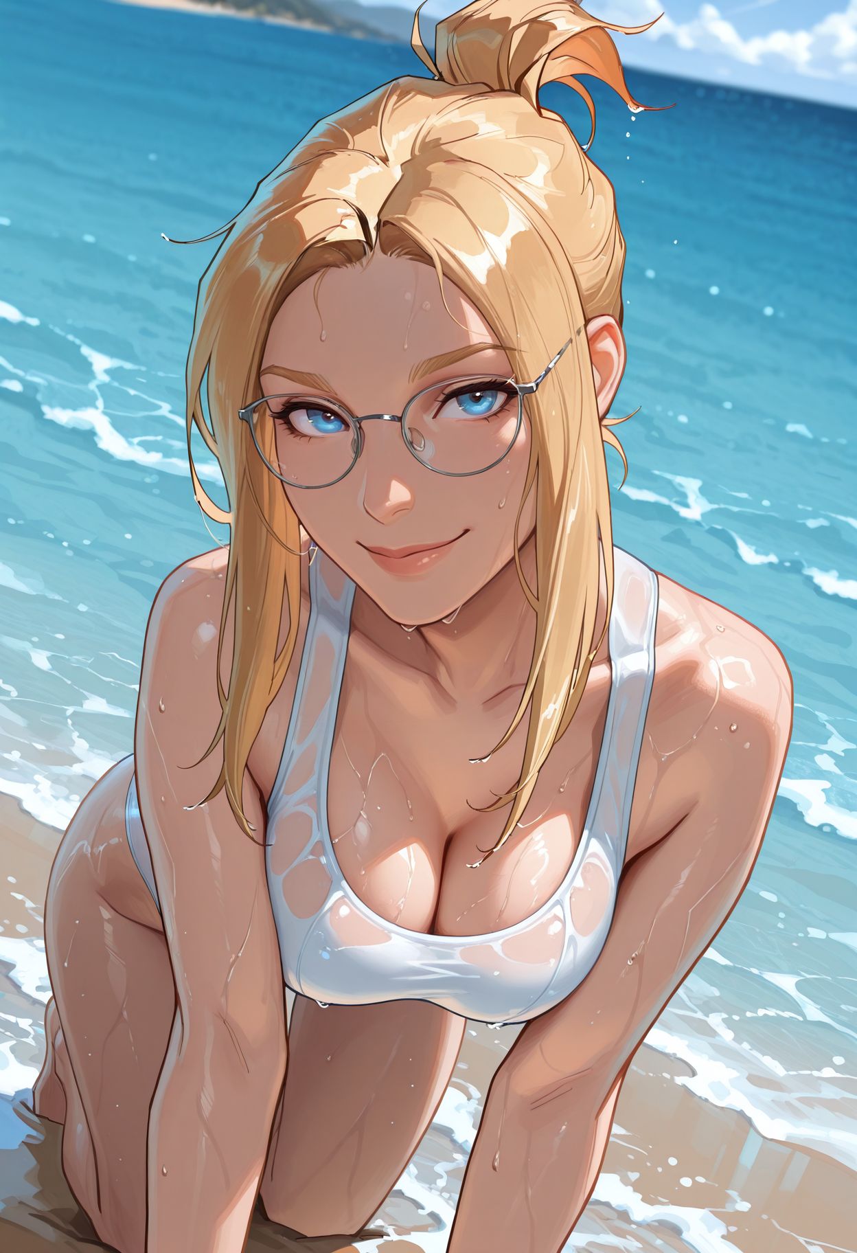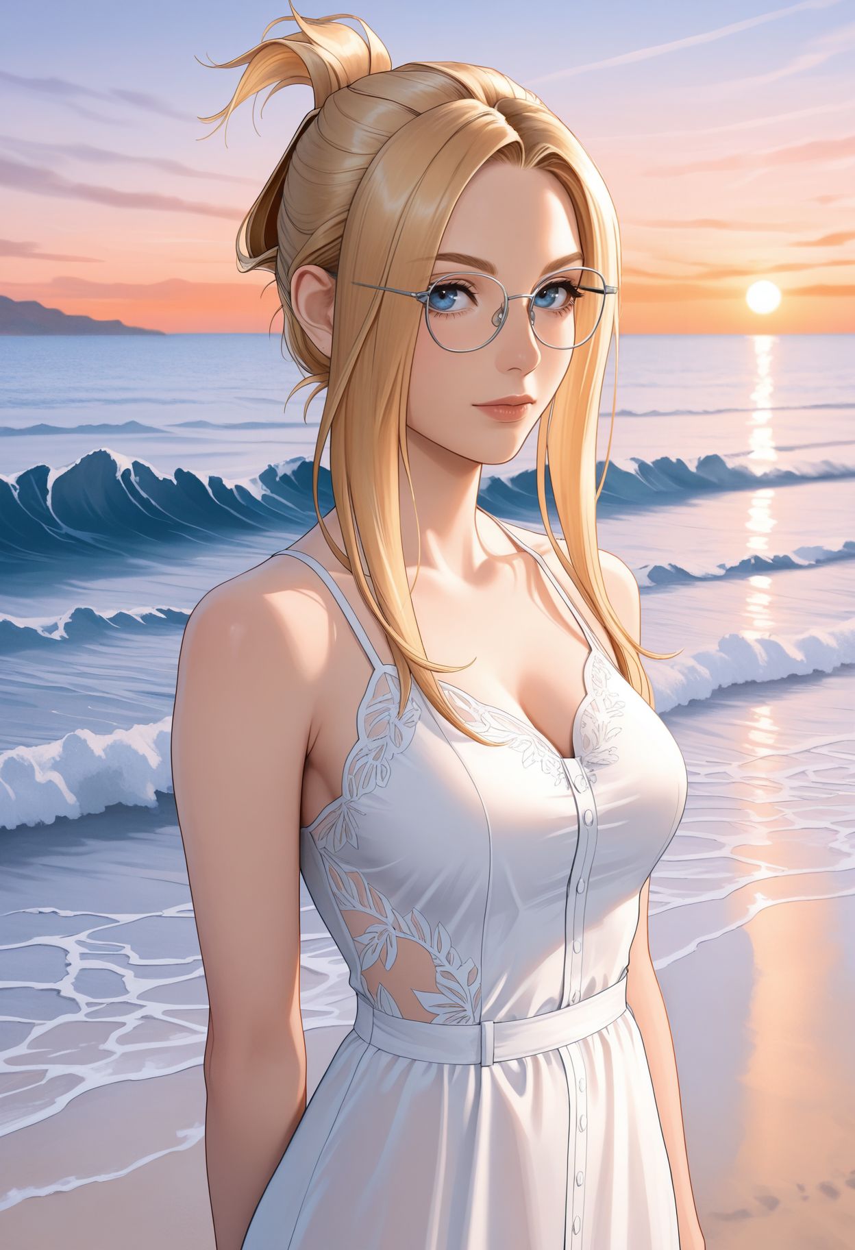 FF8Qu1st1s, 1girl, blue eyes, blonde hair, sidelocks, hair up, glasses