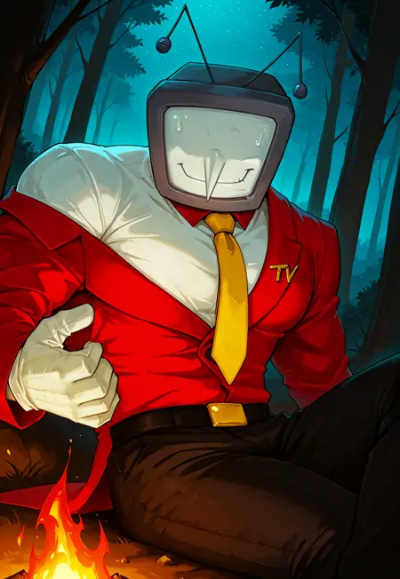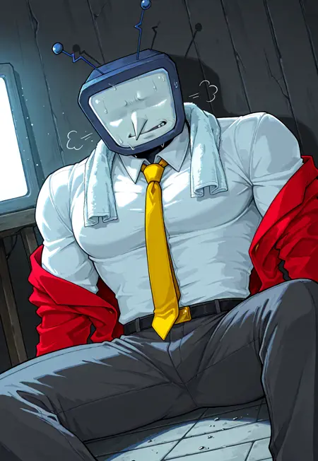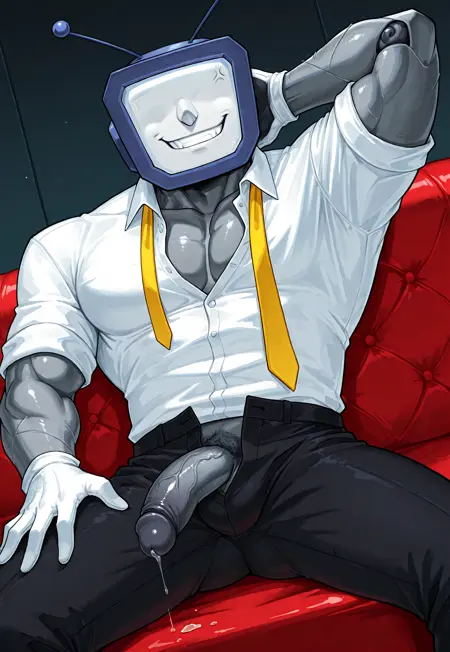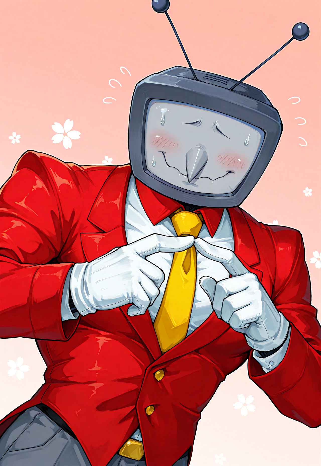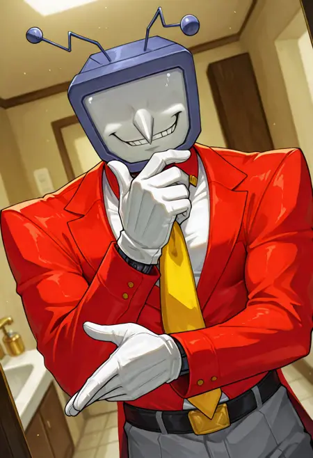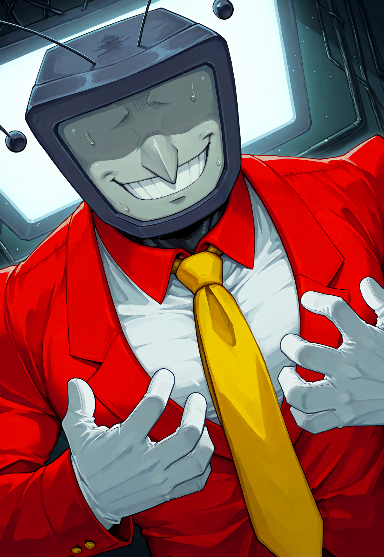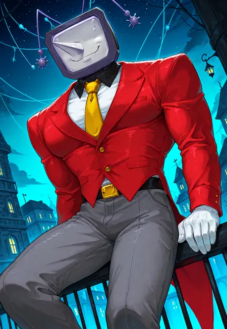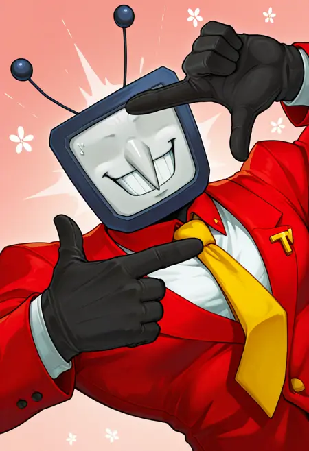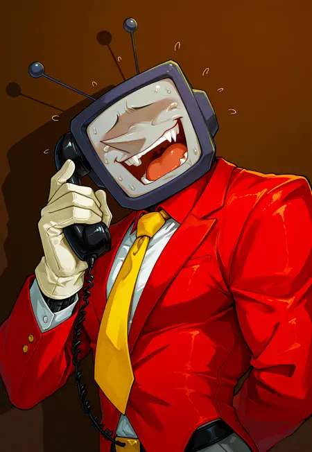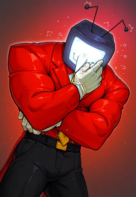 Tenna, television-headed figure, two antennas, (no eyes:1.4), gray skin , pointy nose,