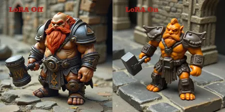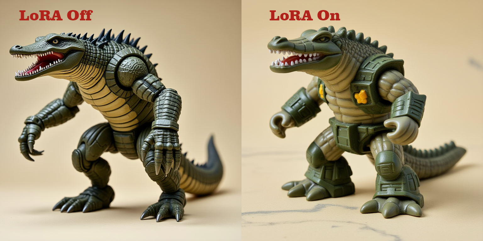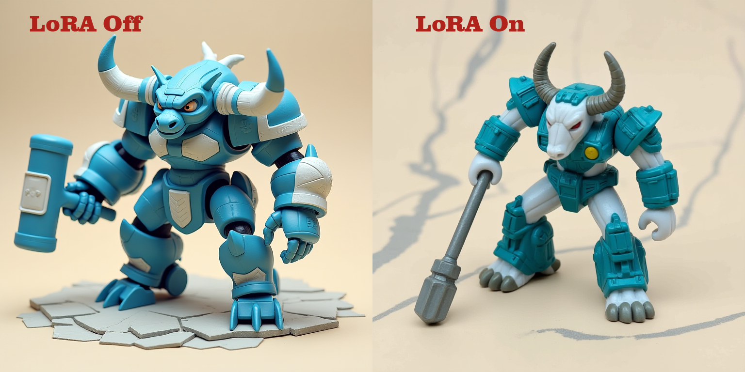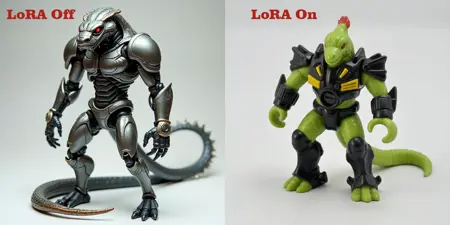 플라스틱 "배틀 비스트" 장난감을 만드는ため의 LoRA를 공유하고 싶습니다. 단순히 재미로 만들었어요. 이 시리즈의 팬들과 수집가들에게 흥미로울 것입니다. 예상치 못한 멋진 결과를 얻을 수도 있습니다. 더 나은 출력을 원하시면 다음 프롬프트를 추가해보세요: "플라스틱 장난감, 로봇 비스트, 인간형 동물, 이족 보행, 화려하게 페인트된 미래형 전투 갑옷 착용, 회전 관절이 달린 어깨, 고유한 무기 액세서리".