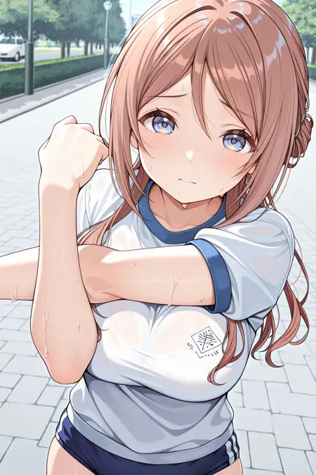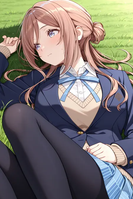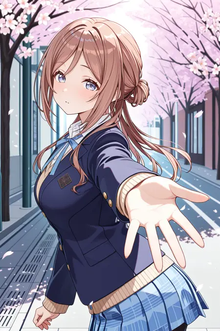 himesaki rinami, blue eyes, brown hair, half updo, long hair