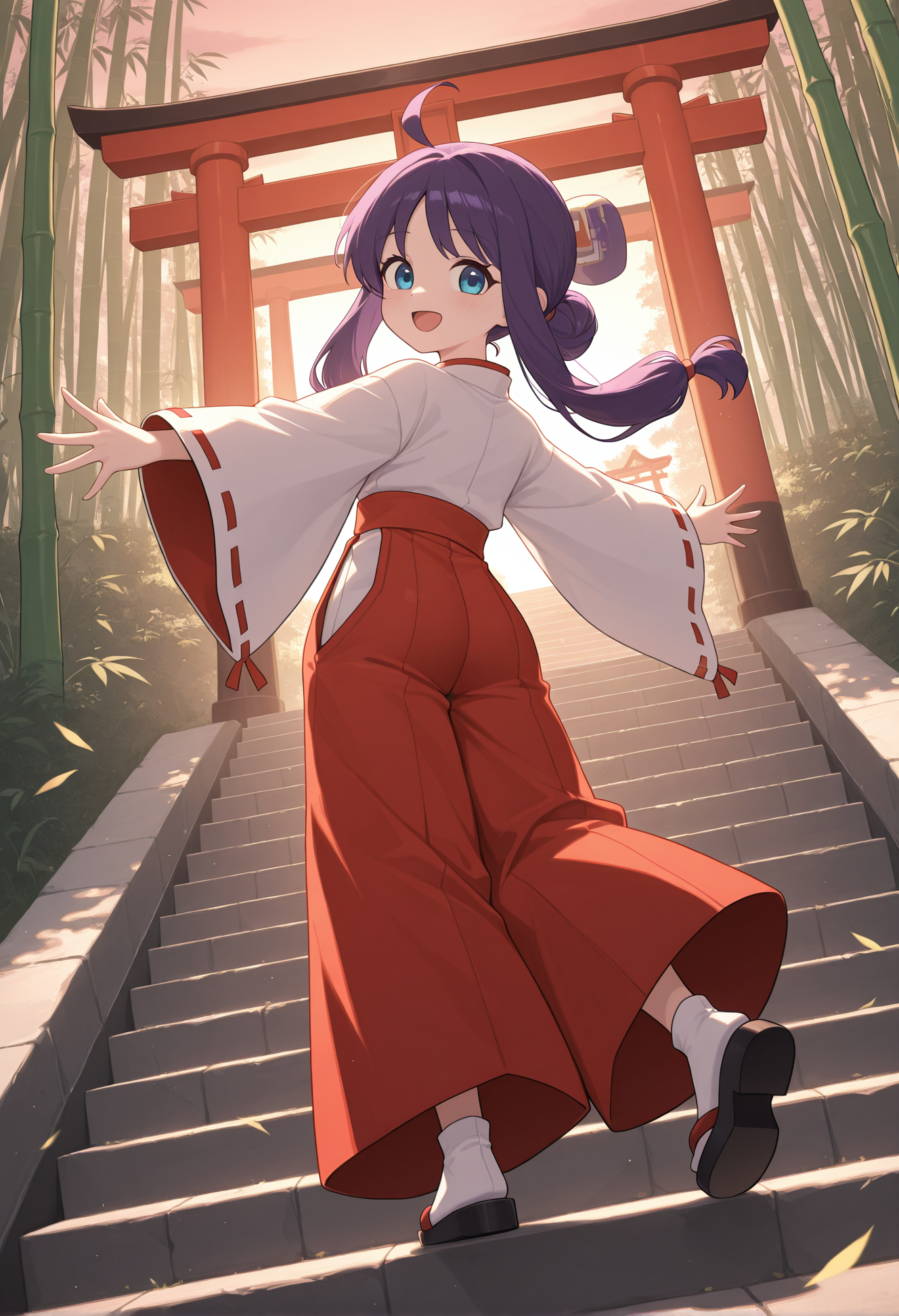 miko,japanese clothes,long sleeves,wide sleeves,red hakama,