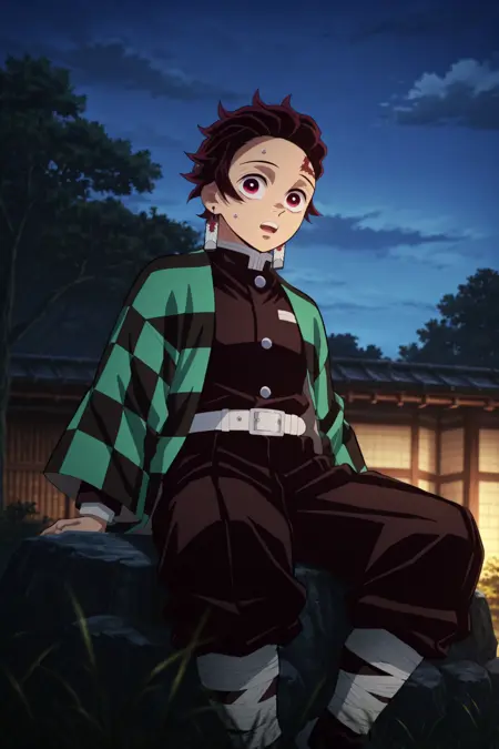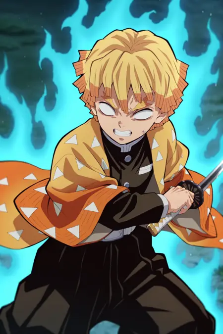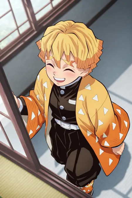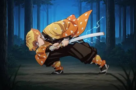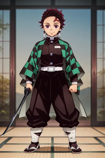 -demon slayer uniform, *orange kimono or green kimono, black jacket, black pants_,_ *leg warmers or bandaged legs, black tabi, sandals
