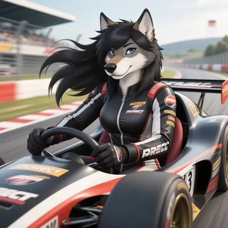 Main Prompt: josie, female, furry, wolf, naked, black hair, blue eyes, tattoo, necklace, lip piercing, ear piercing