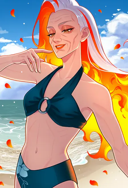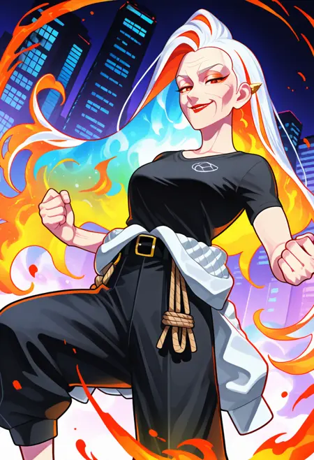 네거티브 프롬프트: 베이스 포즈, old:0.5, tachi-e, 머리가 프레임 밖, 날개, skinny:0.5, 옆을 바라봄, 헤어클립, 클로즈업, 매우 클로즈업, 비정상적, worst_hands, 대체 색상, 숫자 적음, 숫자 과다, 타오름, 화염 조종,