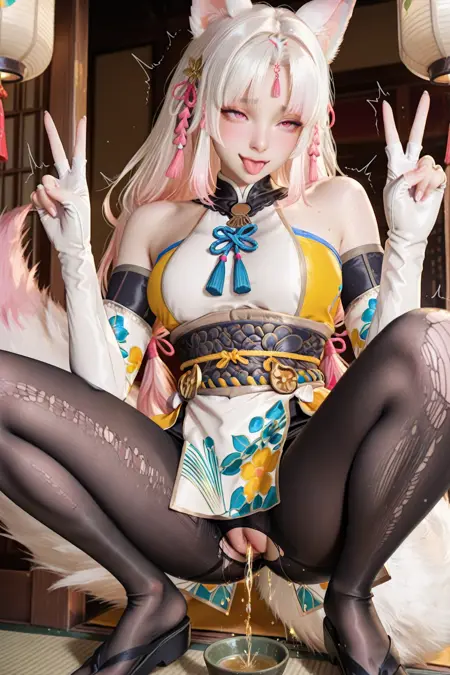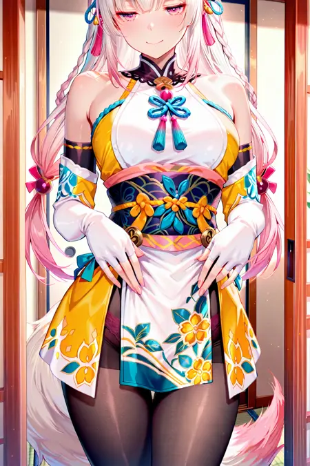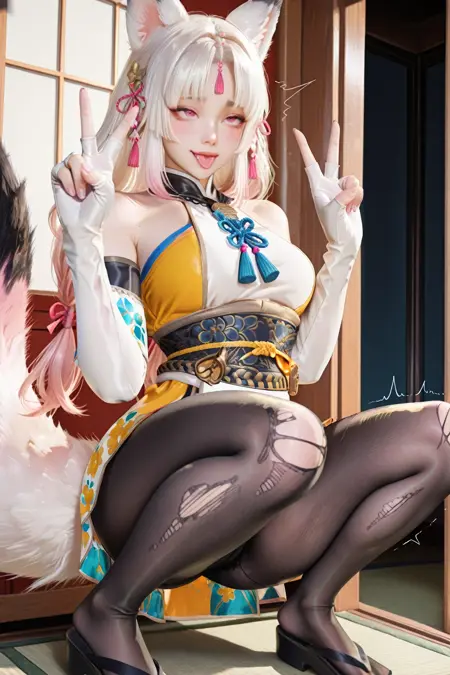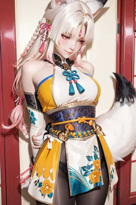 LORA的面部素材取自我在游戏中使用的捏脸和发型,可根据需求通过触发词激活。该LORA还包含一套耳朵和尾巴,可通过提示词(fox tail,fox_ears)激活。但测试发现,尾巴和耳朵的颜色有时会受到角色发型颜色的影响。经过多个模型测试,发现部分模型中角色主体服装的颜色有小概率出现不一致的情况。这些问题预计将在后续推出的V2版本中解决。