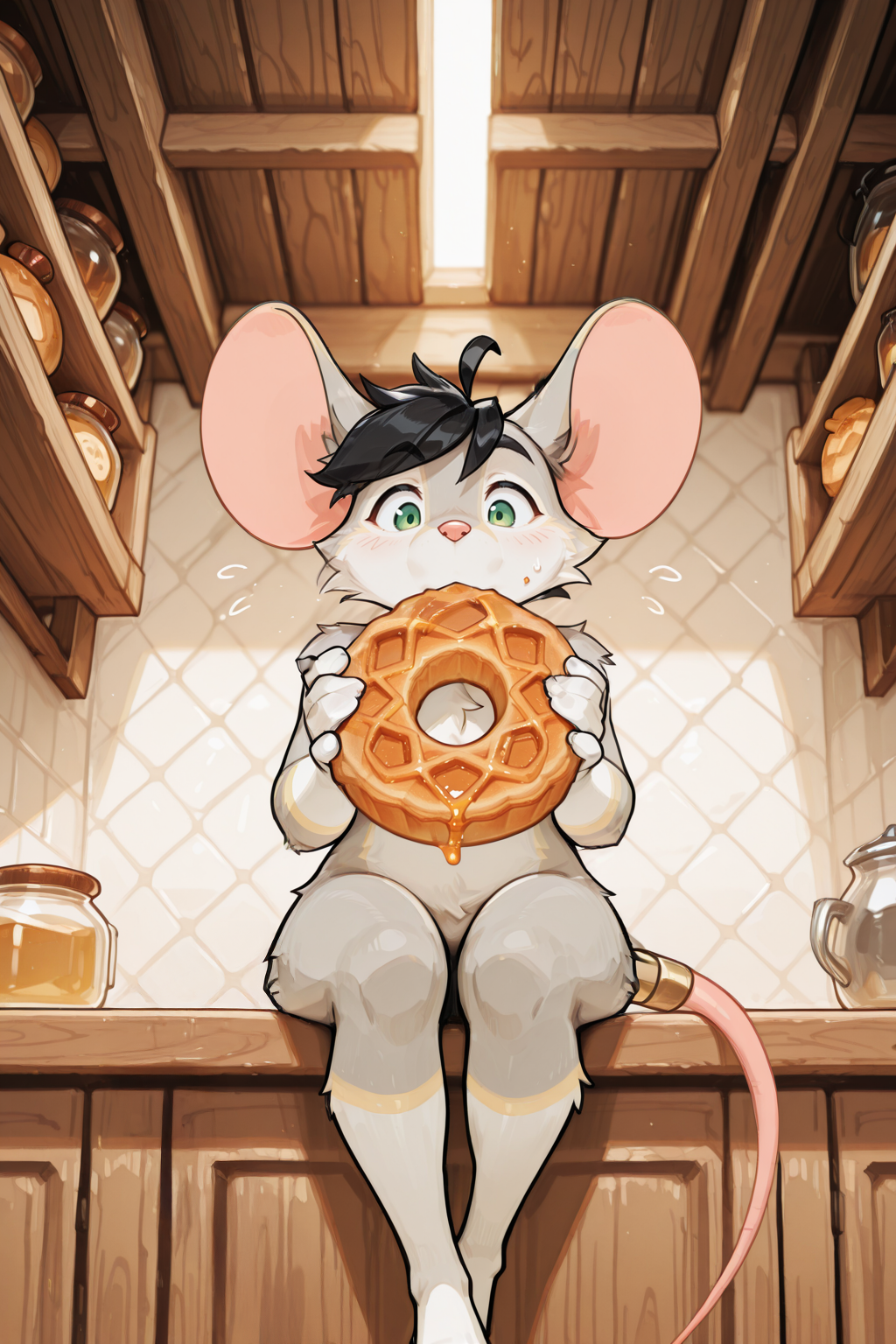 anthro, furry, male, mouse, micro, green eyes, black hair