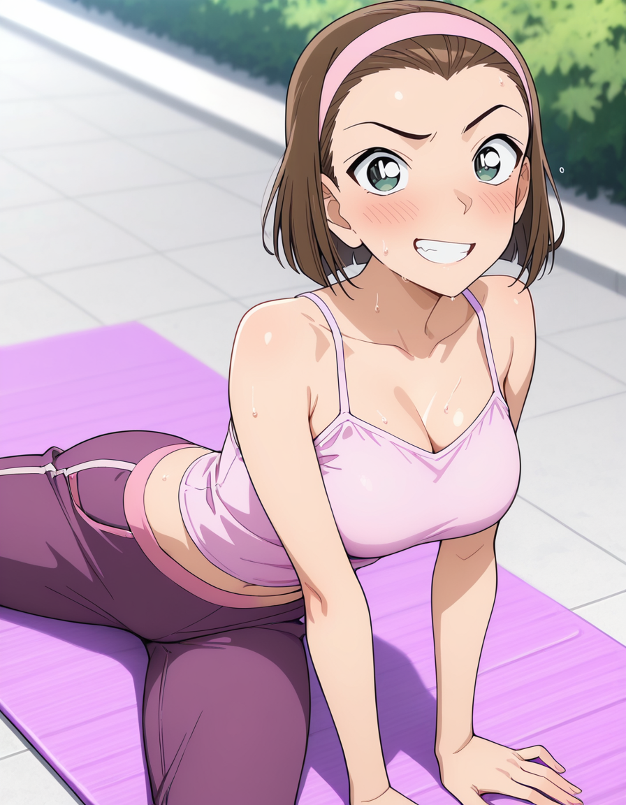 | 학습된 단어 | (anime screenshot:0.2), (suzuki-sonoko, official style, dark green eyes, brown hair, short hair, hair pulled back, hairband, wide mouth, large breasts) 복사됨! (yellow hairband, orange frilled shirt, off shoulder frills, white short shorts, high heel sandals), (dark blue small handbag:1.2) 복사됨! (white hairband, mint green frilled off shoulder shirt, dark blue bra, bra strap visible, dark red skirt, pleated skirt) 복사됨! (orange hairband, brown single strap overalls, green striped shirt, off shoulder, black belt, brown short shorts) 복사됨! (yellow hairband, brown shirt, collarbone, very short sleeves, lace-up, red camisole, camisole visible through clothes, denim short shorts) 복사됨! (red hairband, light blue dress, white frilled neckline, square neckline, dark red belt), (brown small handbag:1.2) 복사됨! (yellow hairband, dark blue multicolored jacket, sleeves pushed up, orange t-shirt, denim shorts, shorts rolled up, brown pantyhose) 복사됨! (pink hairband, red tube top, red neck ribbon, frilled denim skirt) 복사됨! (pink hairband, yellow sweater, turtleneck, sleeveless, dark purple skirt) 복사됨! (light purple hairband, hair flower, red rose, purple dress, square neckline, light purple frilled neckline) 복사됨! (pink hairband, orange long shirt, black neckline, short sleeves, green flower print, bare legs) 복사됨! (pink hairband, pink camisole, dark purple yoga pants) 복사됨! (yellow hairband, light purple tank top, purple frilled skirt, miniskirt, tennis ball, racket) 복사됨! (orange hairband, red frilled tankini, frilled off shoulder, black buruma) 복사됨! (orange hairband, pink bikini, pink bikini skirt, white polka dot, red waist trim) 복사됨! (white collared shirt, short sleeves, green necktie, blue skirt, pleated skirt, miniskirt, black socks, brown loafers) 복사됨! (yellow sweater vest, white collared shirt, short sleeves, green necktie, blue skirt, pleated skirt, miniskirt, black socks, brown loafers) 복사됨! (blue jacket, white collared shirt, long sleeves, green necktie, blue skirt, pleated skirt, miniskirt, black socks, brown loafers) 복사됨! |