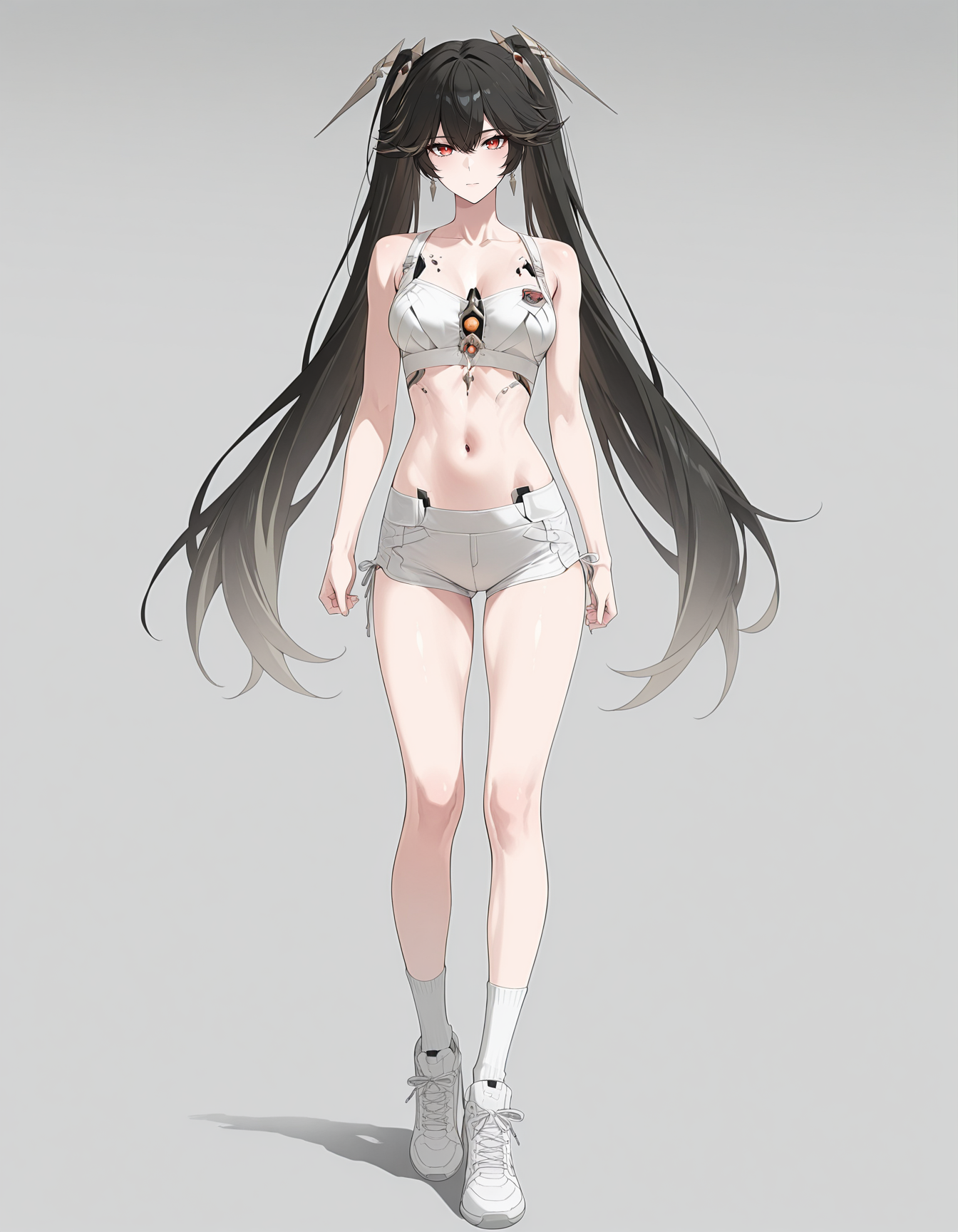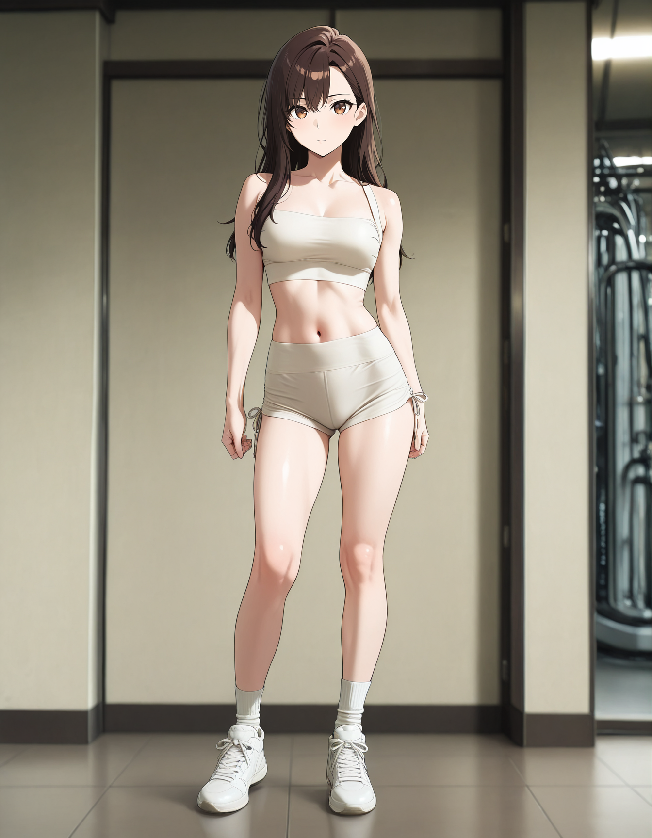mai_sports_bra,white_sports_bra,white_shorts,socks, white sneakers