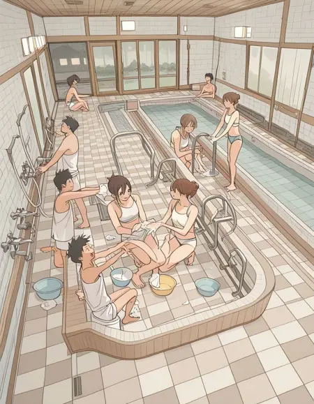銭湯の三助 、 湯女 、 入浴介助 / Public Bath , Bathing assistance