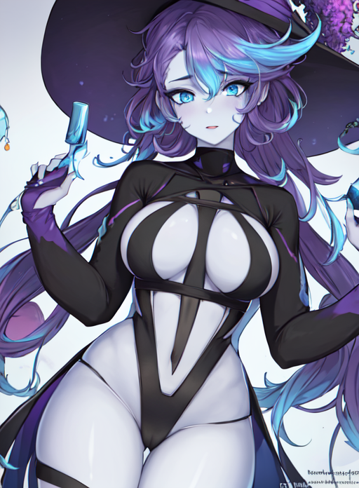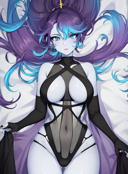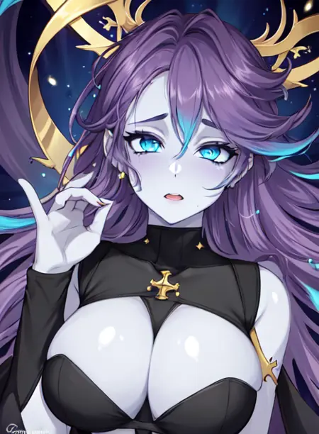 EvanGelinneVT,colored skin, blue eyes, purple hair, multicolored hair,white skin,