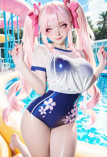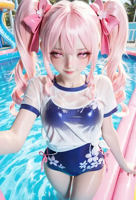 - 粉发,闪粉发,双马尾,长发,钻头发,椭圆脸,妆容,长睫毛,极长发,粉眼,