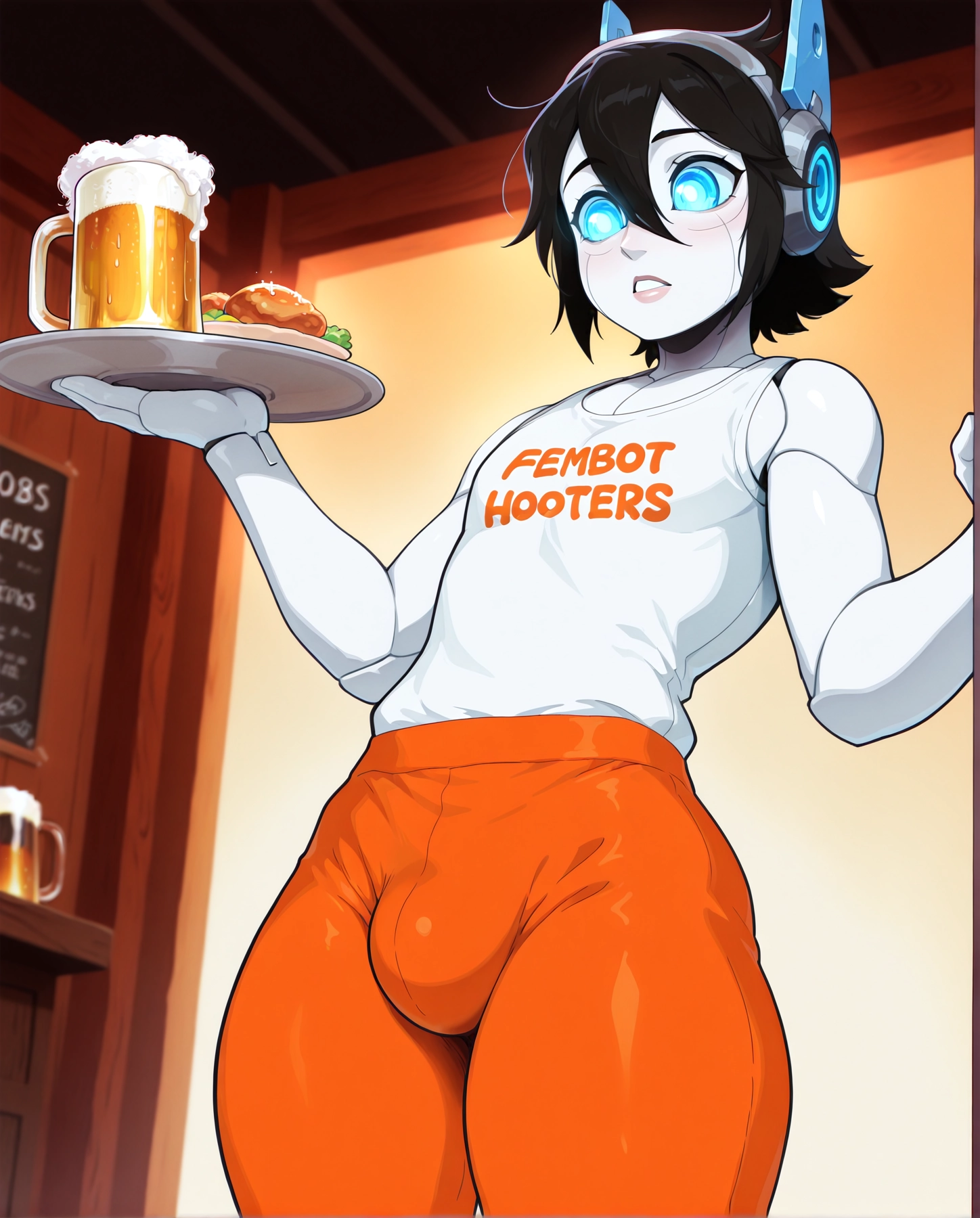 Doesnt have too much trouble removing / replacing his clothes, but might generate red hands / legs if you remove the gloves / pants and are using robot body prompts, so be aware.