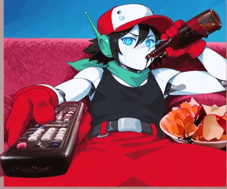Using the "Metal Hat" prompt helps it generate the white portion on his hat to be metal plate if desired, or remove that tag (or put in negative) if you want it to be a normal hat. The circles on the hat that are supposed to be screws / rivets, it tends to just make them cylindrical holes instead, idk.