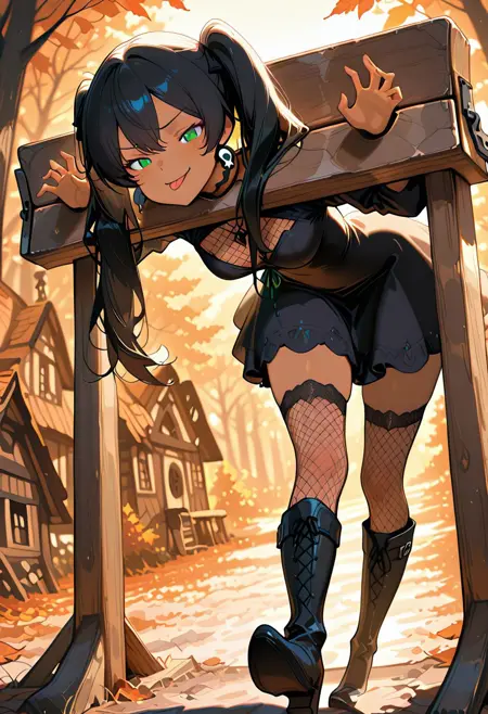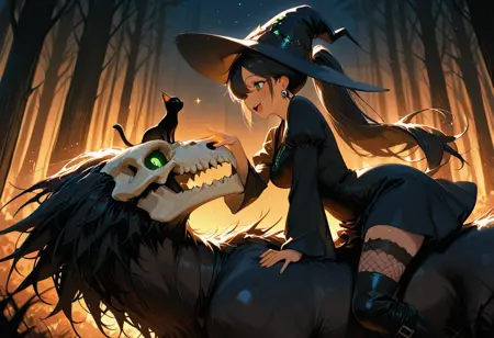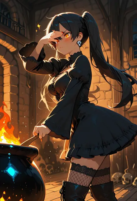Additional Tags: Fishnet stockings, Black Boots, (Sitting on a magic broomstick, Flying on a magic broomstick,)