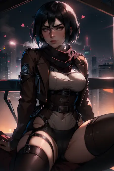 Trigger: mikasa, mikasa ackermann, 1girl, short_hair, mikasa_ackerman, black_hair