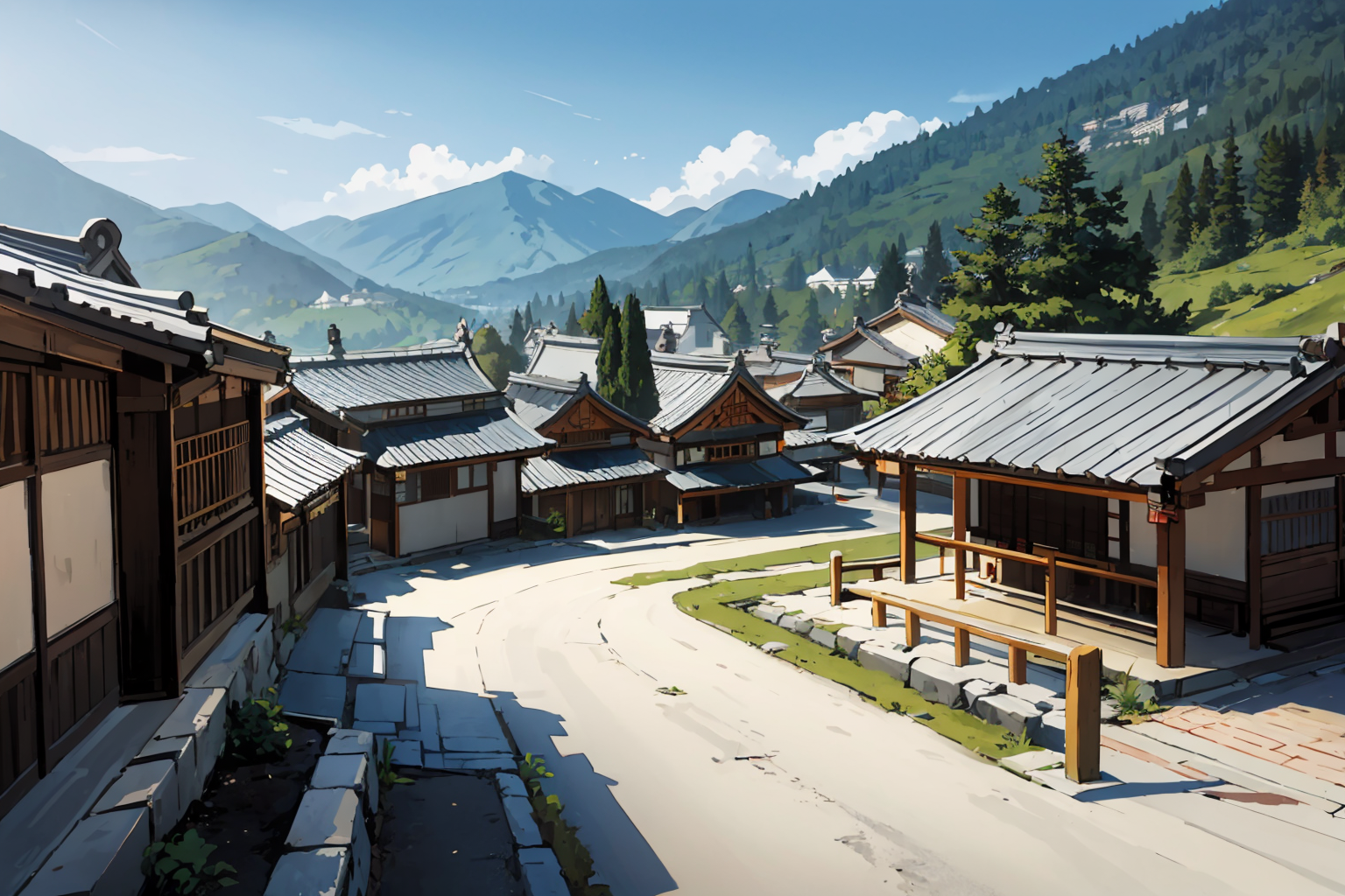 hitozato (人里) / japanese architecture (style of "human village" from touhou)