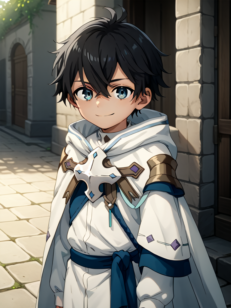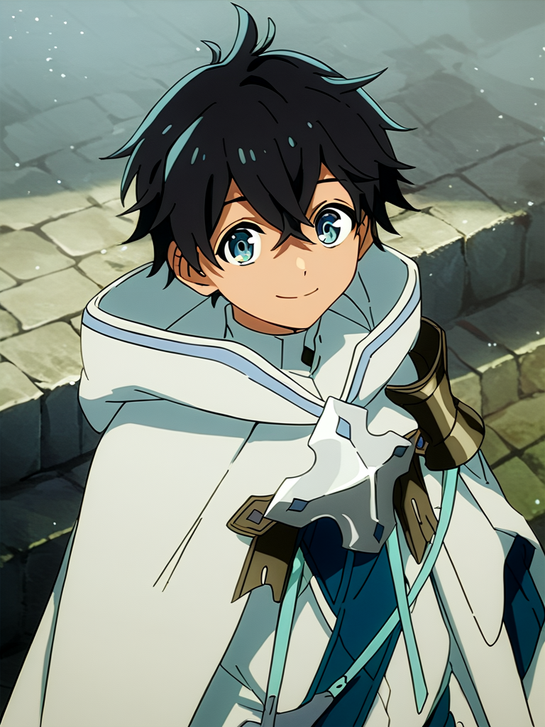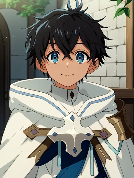 RyoMZnM, 1boy, solo, male focus, blue eyes, short hair, black hair, hair between eyes, bangs