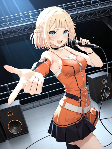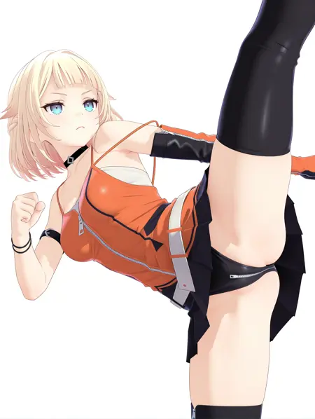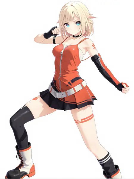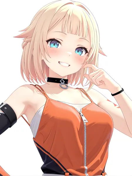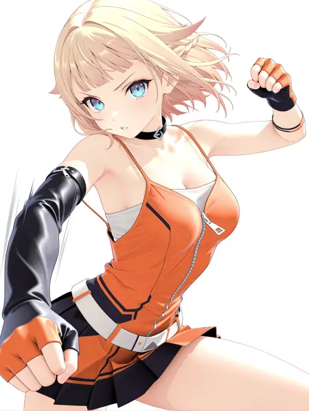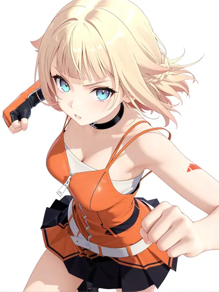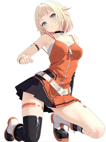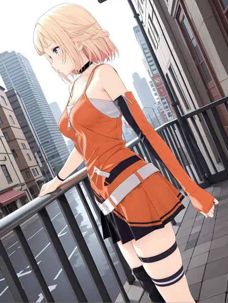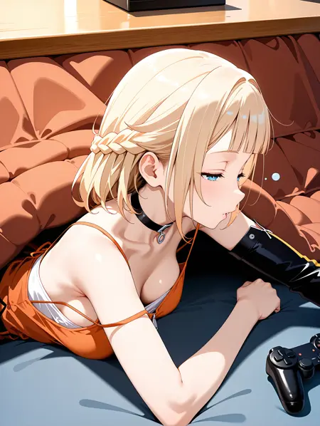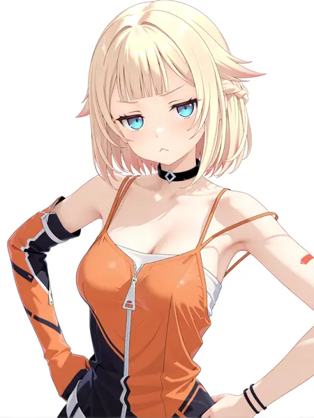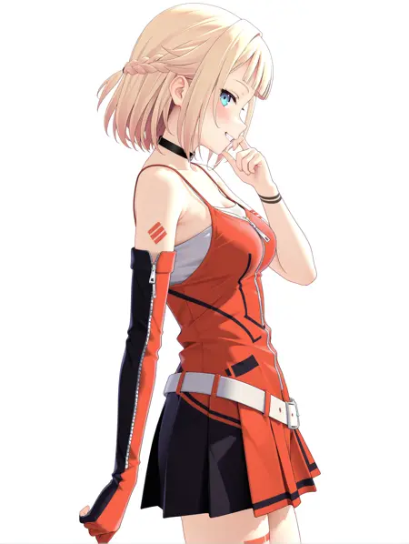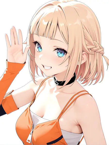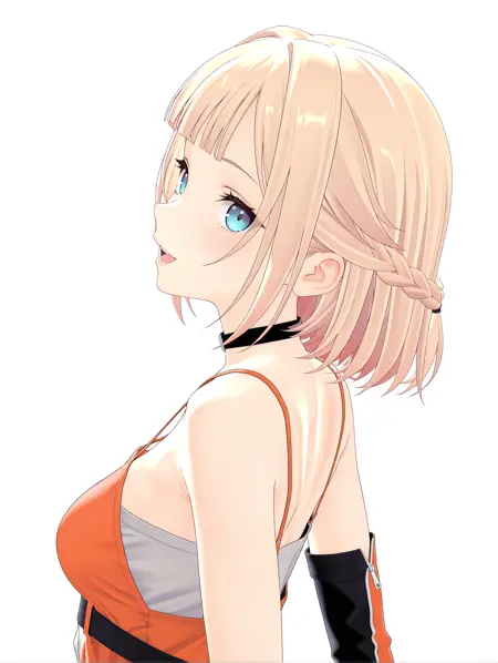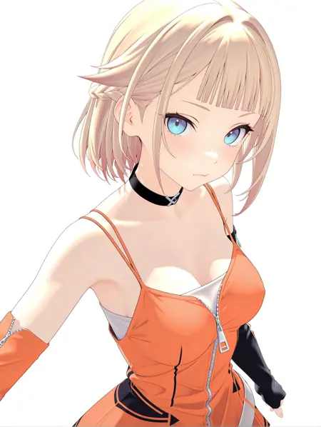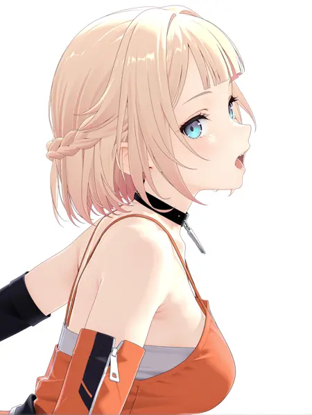트리거 단어: one_xs, blonde hair, blunt bangs, blue eyes, braid,
