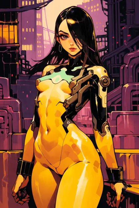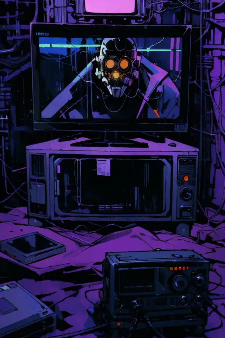 This model is used to generate a world of Cyber Psychosis in 2077, with a preference for 2D elements.