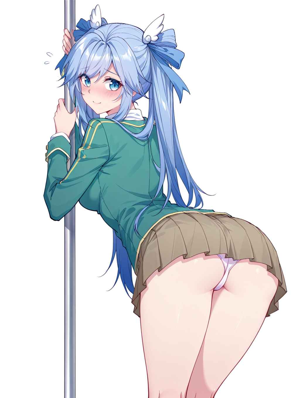 Xu Xiaoyan,1girl,blue hair,twintails,hair ribbon,white background,school uniform