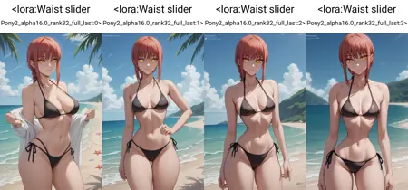 This is a slider LoRA - you can choose whatever weight you want, so experiment and find what suits you best. A positive weight makes a narrower waist. You can use even higher weights such as 8 and above - it all depends on characters and checkpoints.