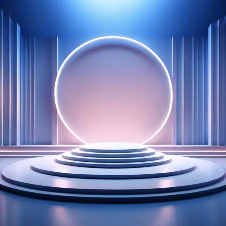 blue theme,realistic,3d,c4d rendering,spotlight,shining,shadows,booth,lora:booth:0.75,