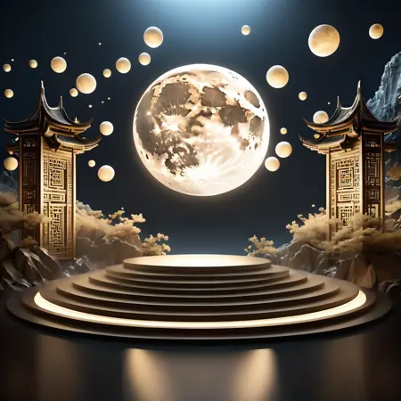 mid autumn theme,realistic,3d,c4d rendering,spotlight,shining,shadows,booth,lora:booth:0.75,