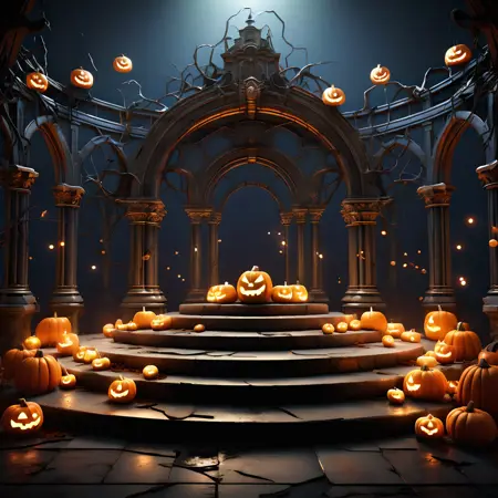halloween theme,realistic,3d,c4d rendering,spotlight,shining,shadows,booth,lora:booth:0.75,