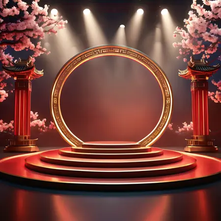 spring festival theme,realistic,3d,c4d rendering,spotlight,shining,shadows,booth,lora:booth:0.75,