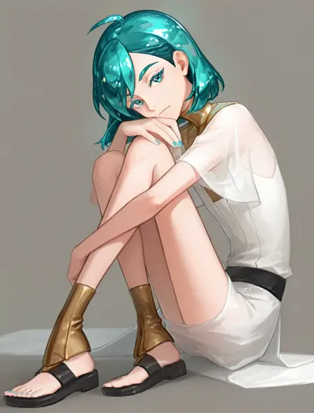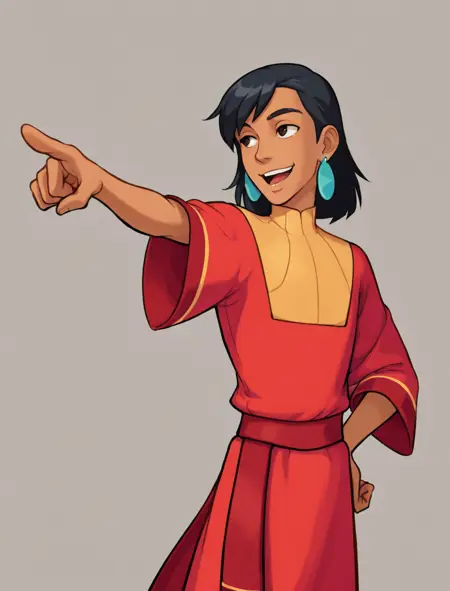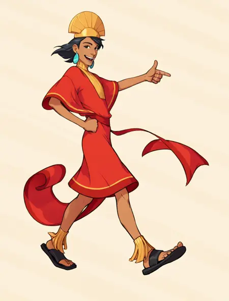 crown, earrings, red robe, waist sash, train /(clothing/), anklet, black sandals