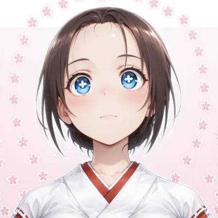 画像的特徴で言えば十字瞳、背景のシンプルな花マーク。