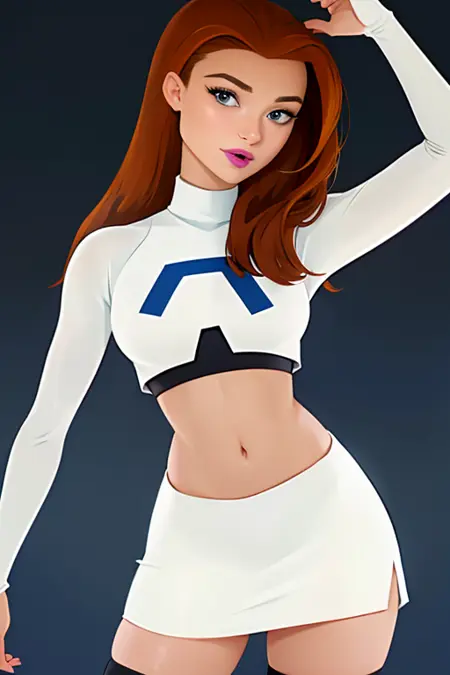 Jen Masterson from the show 6Teen. I generally use it in a range of 0.5-0.7, more than that will generally get a bit fuzzy. You may need to play with the strength a bit depending on the checkpoint used. Due to the dataset, and selection of high quality images, I did not include her work uniform. However, prompting for a 'referee uniform' will probably work fine.