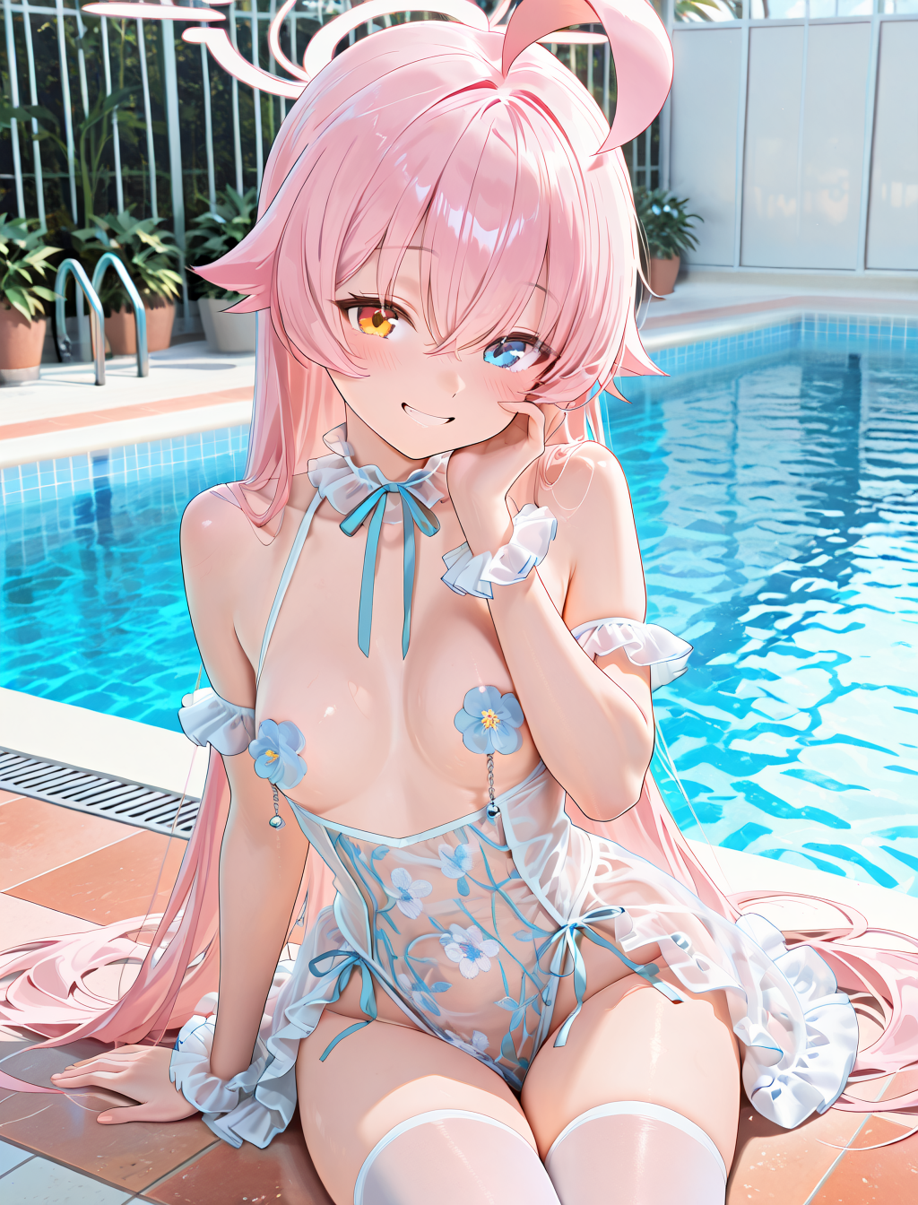 • Since the prompt includes "bell," there might be extra bells generated on the choker (only the pasties should have bells). If the bells on the choker affect the image, consider removing "bell" or adding "choker bell" to the negative prompt.