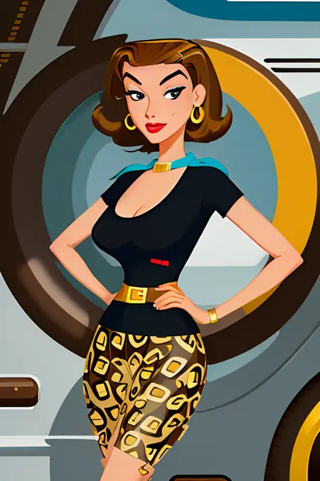 Yummy Mummy from the show 6Teen. I generally use it in a range of 0.5-0.7, more than that will generally get a bit fuzzy. You may need to play with the strength a bit depending on the checkpoint used. It has a lot of difficulty, in my experience, keeping the leopard print isolated to the pants.