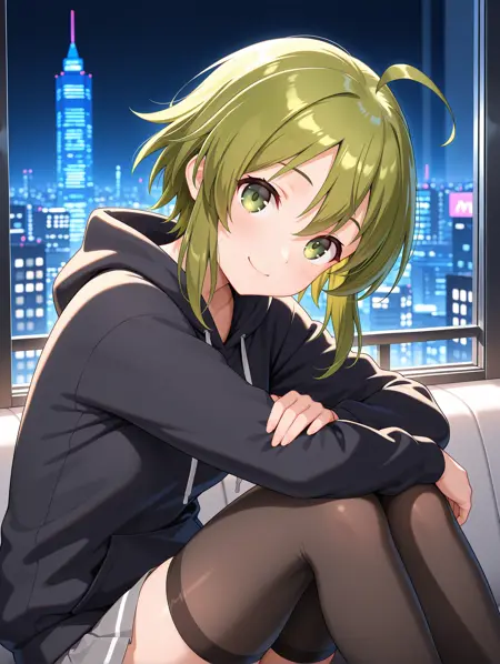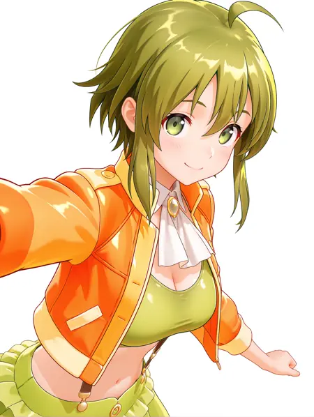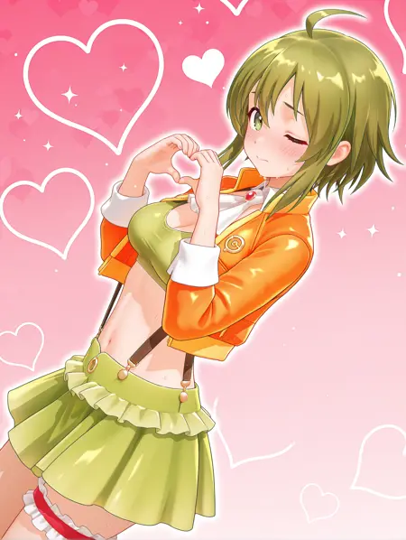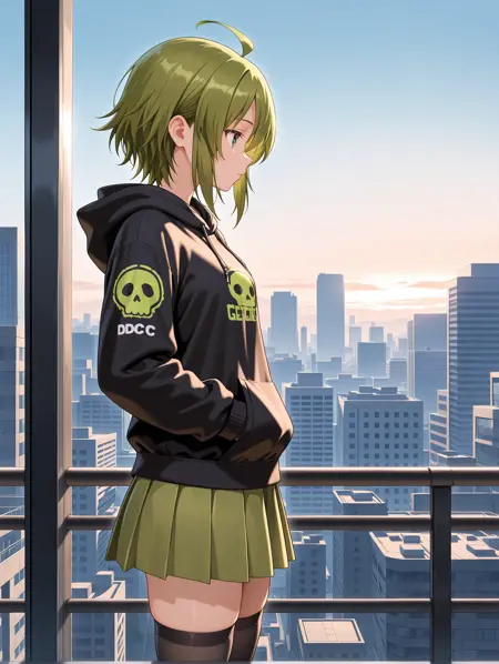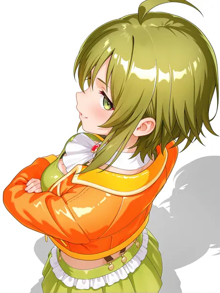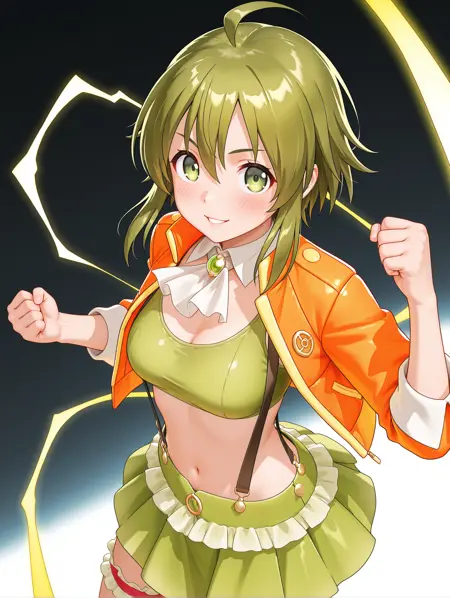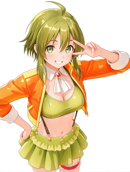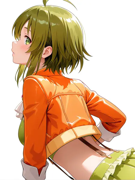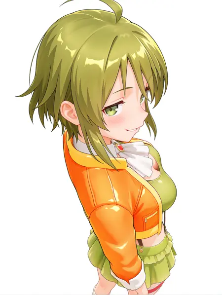 触发词:m_gu_mi, ahoge, short hair, green hair, green eyes,
