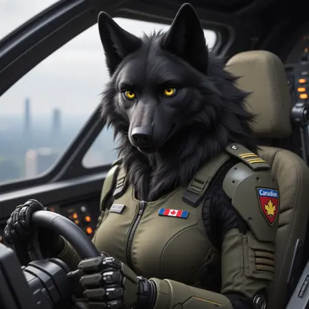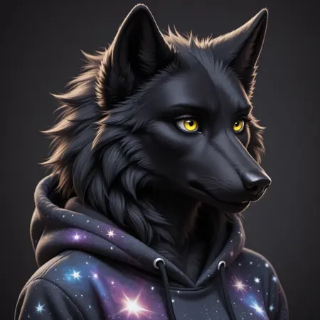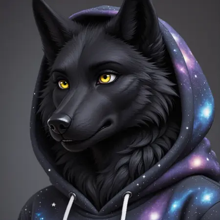 毛茸茸的,狼,雌性,颈毛簇,黑色毛发,黄眼睛,部落服饰,浓密毛发,中等大小乳房,全身